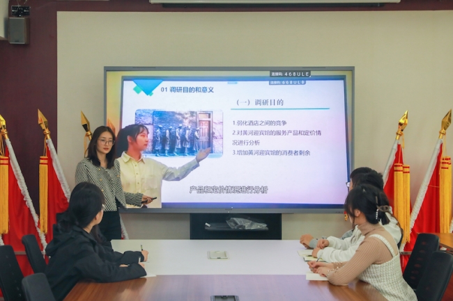 进入决赛后,同学们很兴奋,但随之而来的是紧张和焦虑情绪,这时要注重学生的心理建设。为了克服困难和挑战,指导老师韦惠芳充分发挥统筹协调作用,激发团队活力和热情,使团队成员能够通力合作,尽量将每个环节都做到最好。她会带领同学们关注市场动态,深入黄河迎宾馆实地走访调查,根据市场反馈及时调整营销策略,以保证有足够的竞争优势。决赛汇报前,她会提前列出评委们可能问到的问题,预演决赛答辩场景。