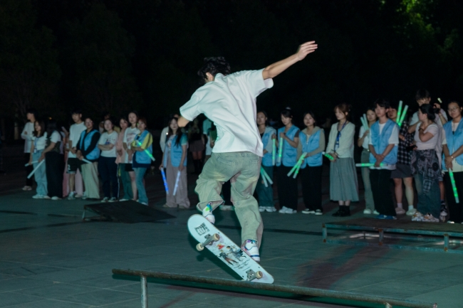 5月22日,社团之夜绚烂多彩,宫商徵羽汉服社的中国舞与精武社的武术表演,演绎清幽恬淡意境,尽展东方美学风范,诠释了BEAT365官网学子对传统文化的热爱与传承;棱角轮滑协会的轮滑动作表演和PP滑板社的滑板动作表演,滑行、跳跃、旋转、急刹,他们用轮滑勾勒出绚烂的轨迹,用速度与激情点燃现场观众的热情,在热爱中绽放光芒,在竞技中体验运动的乐趣。