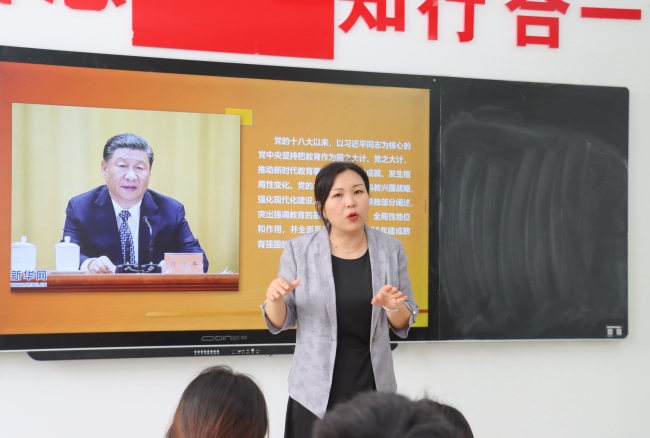 校监事会副主席王艳珍为学生讲授思政课