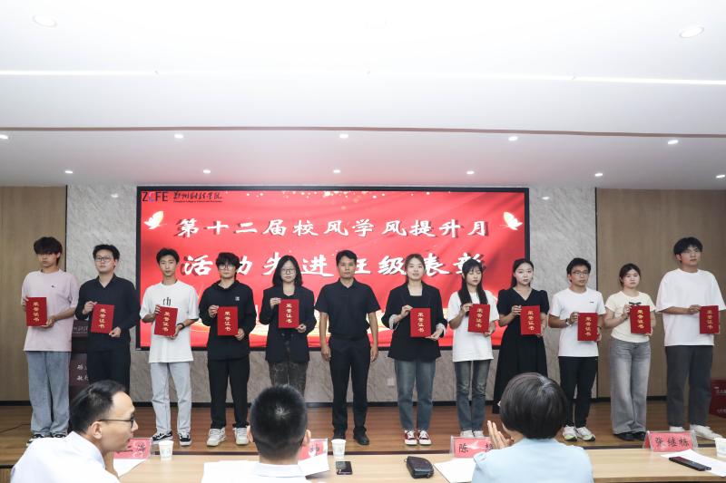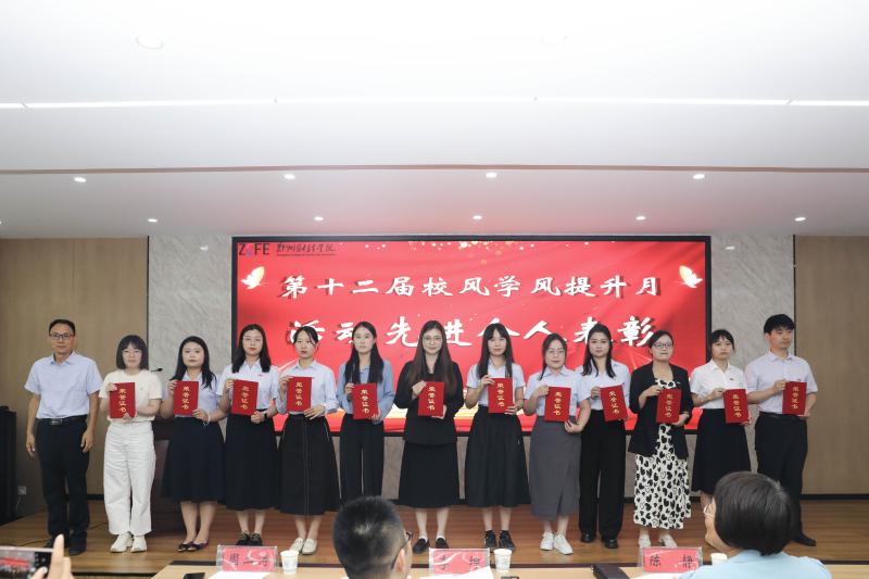参会领导分别为本次校风学风提升月活动评选出的先进单位、先进个人及先进班级获奖代表颁奖。