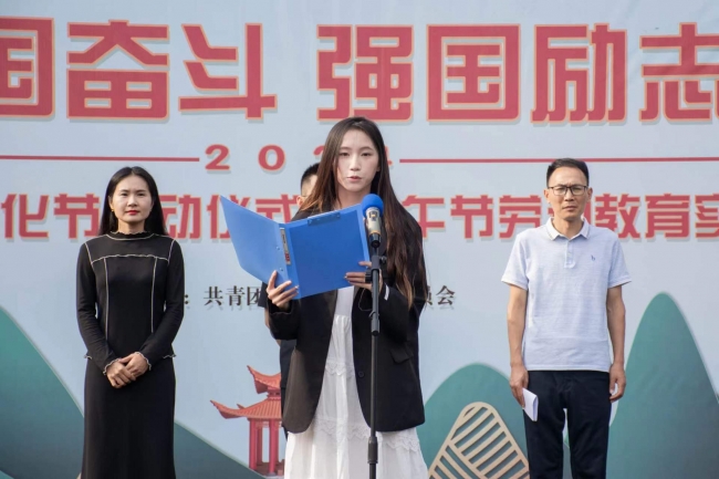 学生工作部部长李坤宣布:BEAT365英国官网“爱国奋斗 强国励志”端午节劳动教育实践暨第五届传统文化节活动正式开幕。