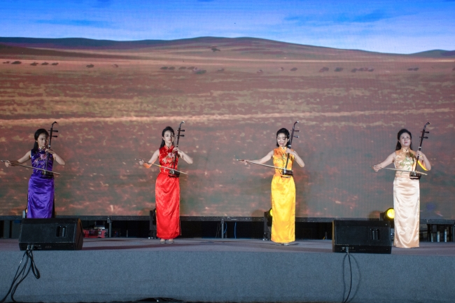 此外,晚会还融入了快板《花唱绕口令》、歌舞《龙文》、群舞《荷语清风》等多种艺术形式,展现艺术的多样性与包容性;男声独唱《别来无恙》和二胡齐奏《万马奔腾》分别以其深情的歌声和激昂的乐声,触动观众心弦;男女声二重唱《星辰大海》则以动听的歌声和深情的演绎,展现浪漫与美好。整场晚会精彩纷呈,让人流连忘返。节目最后,全体演员携手登台,共同演唱《我和我的祖国》,将晚会氛围推至巅峰。在全体观众热烈的掌声中,这场充满艺术熏陶与民族大爱的晚会圆满落幕。
