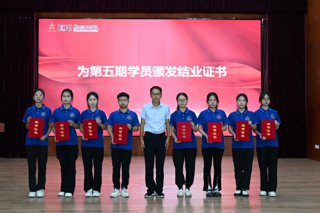 校团委书记周二涛为第五期学员代表颁发结业证书