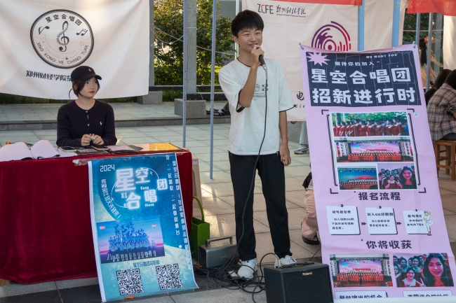 全校78个社团精心策划,在各自的特色展位大显身手。摄影协会为同学们详细介绍日常训练和活动,摆出专业装备,分享拍摄经历;宫商徵羽汉服社成员身穿传统服装,华彩纷呈,为校园带来古典美气息;棋艺社吸引了爱好者现场对弈,在喧闹中独守沉静;书画协会翰墨飘香,继承传统,赓续文脉;各类音乐社团“先声夺人”,古今器乐纷纷登场……群星闪耀,一展风采,与时代同频,向梦想出发,丰富的社团活动与展示让大家走进丰富多彩的校园生活。