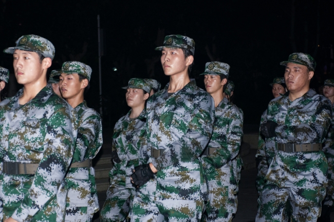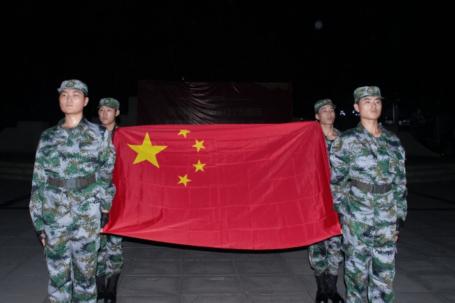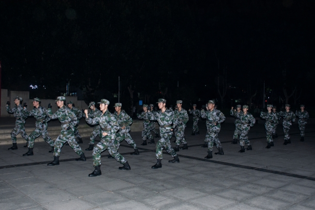 9月29日晚上,全体国旗护卫队队员在校园文化广场进行汇报演出,校团委负责老师和600余名学生一同观看了演出。