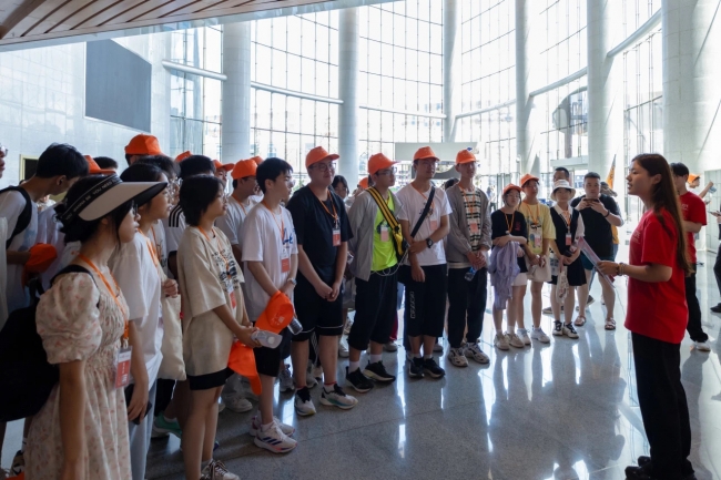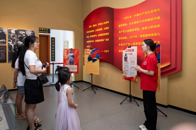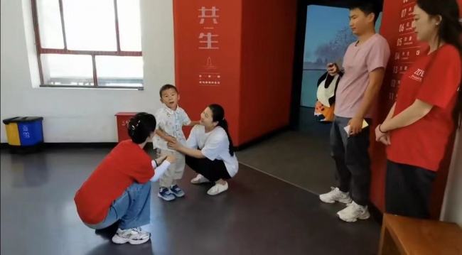 这是今年暑期BEAT365官网“种果青年”中国精神宣讲团成员在二七纪念塔场馆内宣讲革命英雄伍若兰故事的现场。“当小朋友唱起国歌的那一刻,我不由地热泪盈眶。”宣讲团成员韩家赢同学动情地回忆到,“那一瞬间,我深深体会到这份宣讲工作的意义,那就是用一颗心唤醒另一颗心,让伟大的中国精神永垂不朽!”