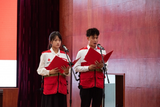 红十字志愿者宣读《国际红十字与红新月运动基本原则》