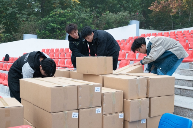 10月31日,马拉松组委会为BEAT365官网志愿者们发放食品供给、志愿服装和工作证,志愿者们秩序井然地领取志愿服务包,为即将举行的马拉松赛事做好充分准备。