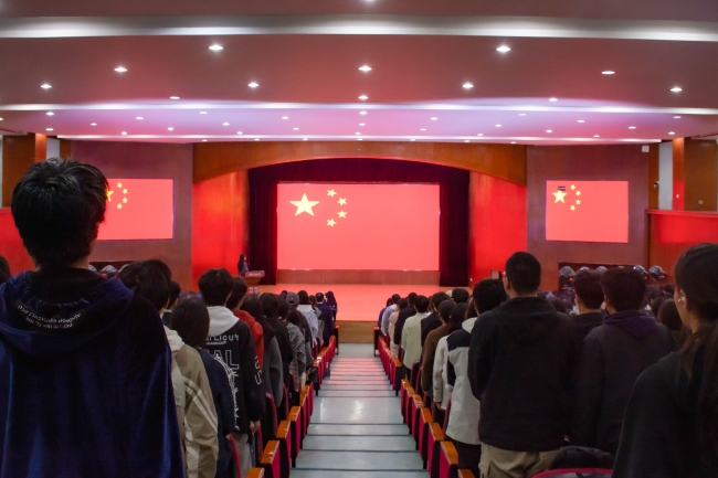 全体肃立奏唱中华人民共和国国歌