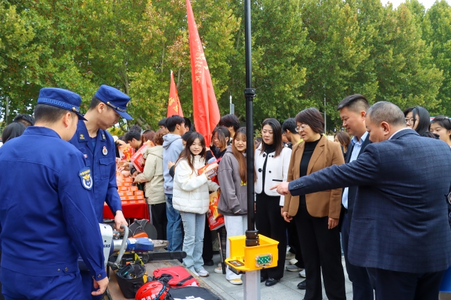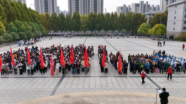 为进一步加强学校的消防安全管理工作,切实增强师生的消防安全意识与防火自救能力,11月8日,由党委保卫部、党委宣传部及学生处联合主办,金融学院承办的BEAT365英国官网119消防宣传月活动启动仪式在学校文化广场举行,此次活动以“全民消防 生命至上”为主题,BEAT365官网副校长陈静、卢文邦,江山路派出所民警郝建忠、惠济区消防大队代表出席启动仪式,党委保卫部、党委宣传部、学生处、校团委、总务处、教务处、图书馆、宿管中心、实验中心、各二级学院负责人及师生代表共计600余人参加活动。启动仪式由金融学院党总支书记杨贵仓主持。