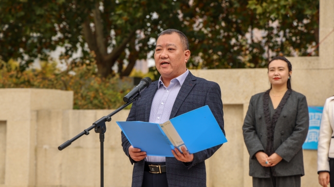 金融学院党总支副书记姚明全作为教师代表进行发言,他提出要在言传身教中重视消防安全工作,通过教育一名学生带动一个家庭,挽救一个家庭带动一个社会,要身体力行,做消防安全知识的学习者、践行者、传播者和守护者,为构建和谐安全稳定的校园环境贡献自己的力量。