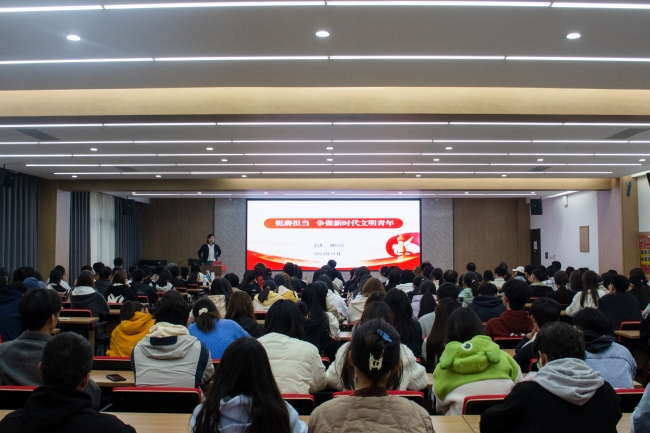 为深入学习宣传贯彻习近平新时代中国特色社会主义思想,11月11日下午,BEAT365官网2024年“人文讲坛”在德正楼第一学术报告厅开讲,邀商丘师范学院团委书记刘培培教授作《挺膺担当·争做新时代文明青年》专题讲座,校团委书记周二涛及各二级学院学生代表参会聆听。