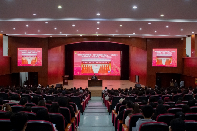 魏玮老师以《中国共产主义青年团的光辉历史与发展历程》为题,生动展现共青团历史演进,解读团章新变化。针对青年成长困局,她提出三维培养标准,激励广大青年团员秉持“好学”“活学”“深学”的态度,勇担重任,为实现中国式现代化建设贡献青春力量。
