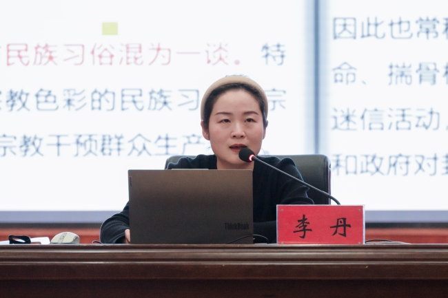 李丹老师主讲《坚定不移贯彻党的民族宗教政策,全面维护国家安全》。她深入浅出讲解党的民族宗教政策与国家法律,引导入团积极分子自觉树立正确的国家观、民族观、历史观、文化观和宗教观,自觉遵守民族宗教政策法规,做坚定的马克思主义信仰者和实践者。
