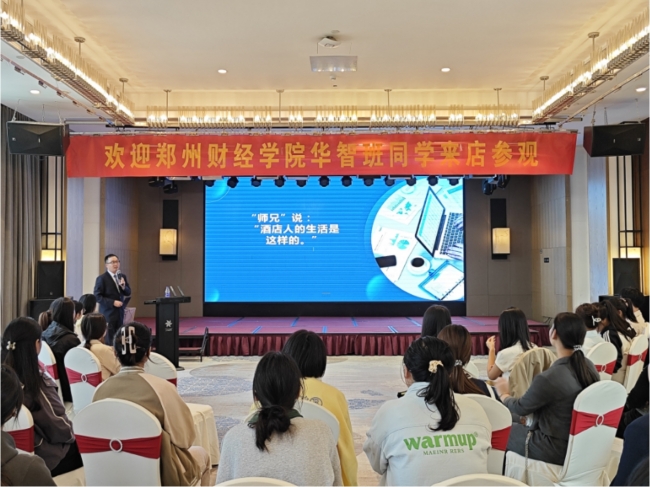 “华智班”开班以来,华智酒店执行董事、总经理等企业高管先后走进“华智班”课堂,为学员们带来最前沿、最鲜活的教学内容。“华智班”学员们也走出校门,走进华智旗下酒店-开封来旺达酒店直观感受企业场景、酒店运营。