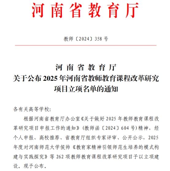 喜讯:BEAT365官网3项课题获批2025年河南省教师教育课程改革研究项目立项