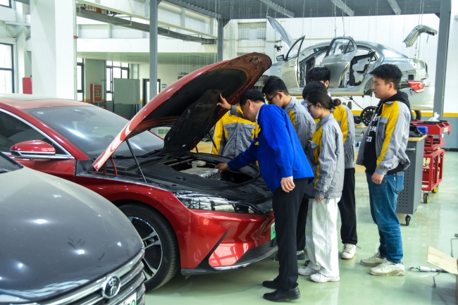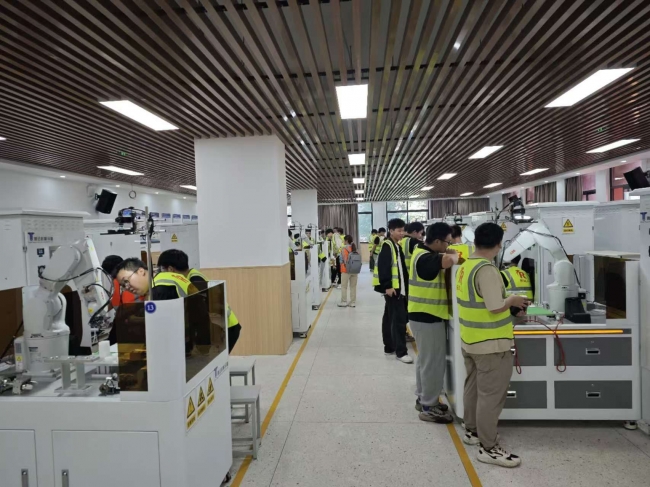 学生在东风日产汽车智能装备专精特新产业学院实习
