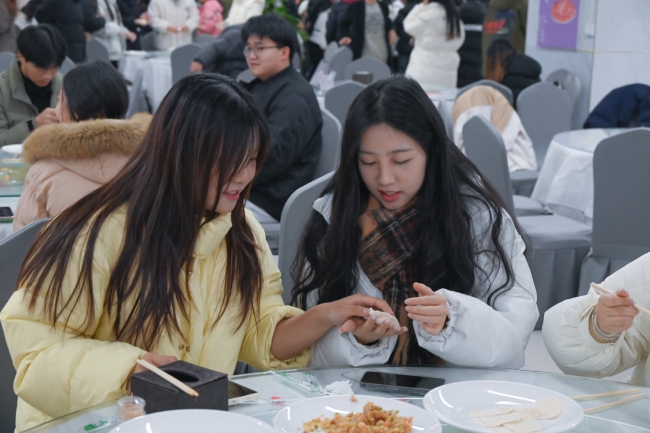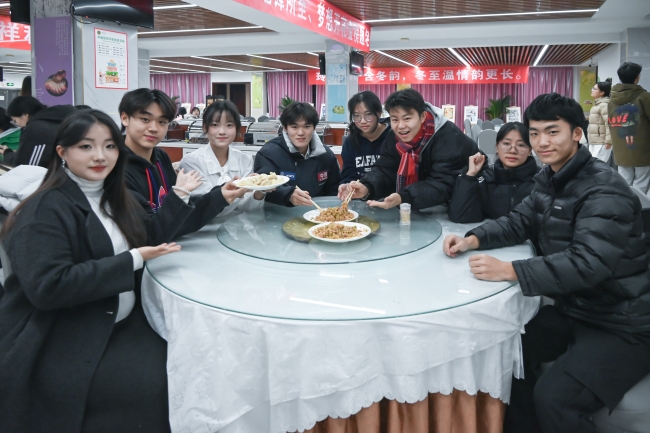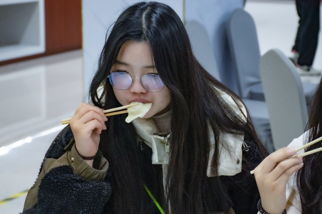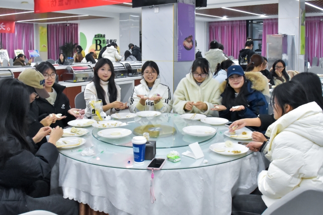 随着餐厅工作人员端上一盘盘热气腾腾的饺子,整个活动现场被浓郁的香气所包围。学子们围坐在一起,品尝着亲手制作的美味佳肴,互相交流着各自家乡的习俗与趣事,感受着劳动带来的喜悦和满足,为这场温馨的盛宴画上了圆满的句号。