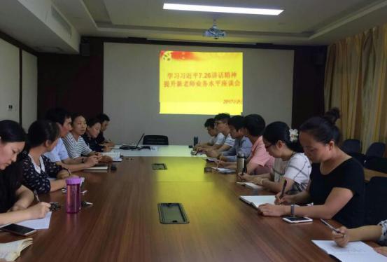 在现代物流与管理学院党总支的统一安排部署下,9月19日下午,在B-608会议室召开了“深入学习贯彻习近平总书记7.26讲话精神,努力提升新教师教学科研业务水平”座谈会。院党政班子、各党支部委员、教师党员、2017全体新进教师、“一对一”业务帮扶导师以及部分骨干教师参加了座谈。会议由学院党总支书记袁清主持。