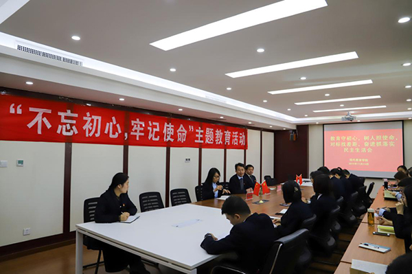 为深入推进“不忘初心、牢记使命”主题教育,根据主题教育活动安排,现代教育学院党总支在11月13日中午于A-608会议室召开了“教育守初心,树人担使命,对标找差距,奋进抓落实”民主生活会。现代教育学院党总支书记丁青山,副书记曹亮,教学副院长郑琳娜及学院全体党员师生参加会议。会议由丁青山主持。