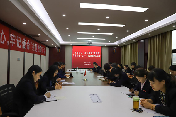 为落实“不忘初心、牢记使命”主题教育,提高教书育人的水平,增强教师自我提升意识,做好教师职业发展规划,现代教育学院于10月22日在A—608召开了全体教师职业发展专题会议,现代教育学院院长陈冬花,党总支书记丁青山,党总支副书记曹亮,教学副院长郑琳娜及全院教师参加了会议。会议由丁青山主持。