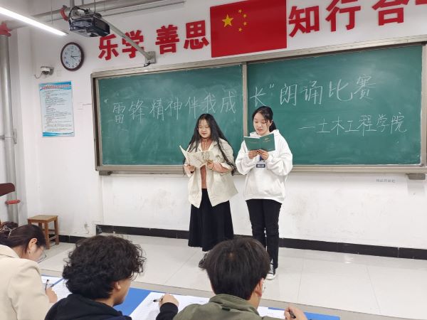 3月16日下午,土木工程学院于J4-102举办了以“雷锋精神 伴我成长”为主题的朗诵比赛,同学们用诵读的方式弘扬雷锋精神,传承红色基因。