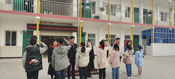 小学生为学院志愿师生佩戴红领巾