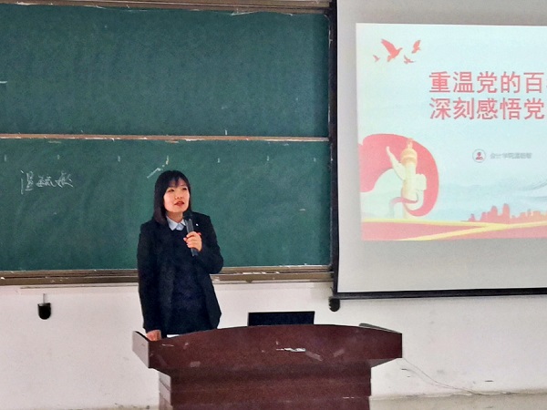 3月29日,会计学院分党校2021年上半年入党积极分子党课培训班在J7阶梯二教室顺利开讲,会计学院党总支书记温毓敏为教工及学生入党积极分子作《重温党的百年光荣历程 深刻感悟党的初心使命》专题党课培训。