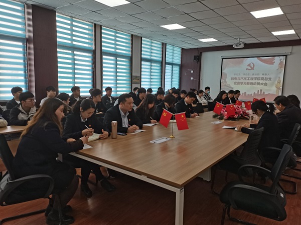 4月1日,机电与汽车工程学院党总支召开以“学党史,颂党恩,强信念,育新人”为主题的党史学习教育动员大会。学校副校长卢文邦出席会议,学院院长何文平、党总支书记孟倩倩、副书记刘玲玲及学院全体师生党员参加会议。会议由孟倩倩主持。