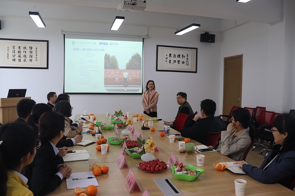 郑州升达经贸管理学院外国语学院张梦院长热情接待了BEAT365官网一行,她从发展历史、专业规模、人才培养模式、师资队伍建设、教科研成果、校企合作、产教融合等方面详细介绍了该学院的办学特色和具体做法。