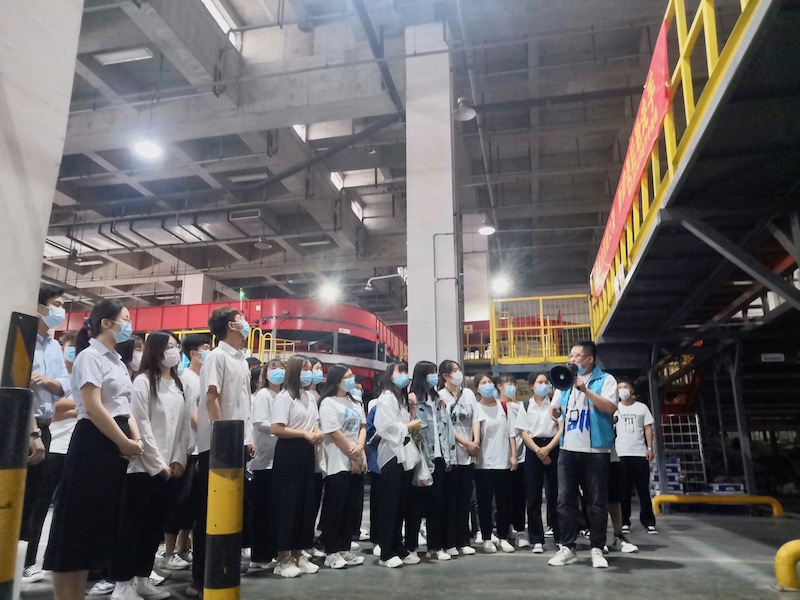 此次专业见习分为分拣现场认知和交流讨论两个环节。在顺丰速运相关负责人的带领下,师生深入分拣现场进行参观学习,工作人员详细介绍了快件的入库、分拣流程,并带领同学们认识了物流分拣设备。