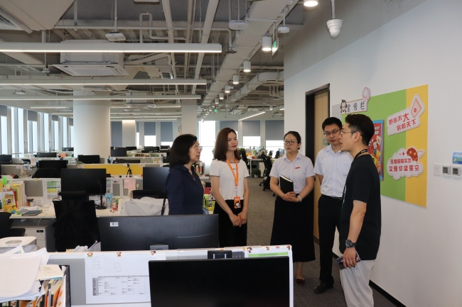 在猿辅导工作人员的接待讲解下,学院考察人员实地参观了公司环境,了解了企业文化、员工工作时长、教学模式等。双方随后在会议室围绕学生实习工作进行了深入交流讨论。