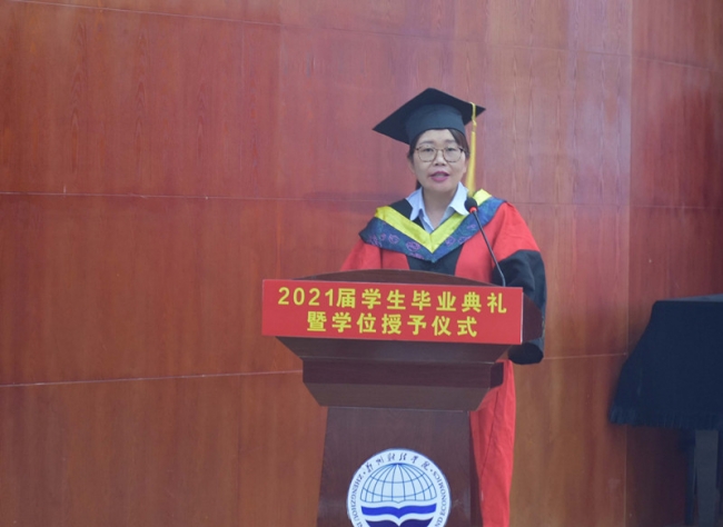 副院长邢丹丹宣读《BEAT365英国官网关于表彰2021届优秀应届毕业生的决定》