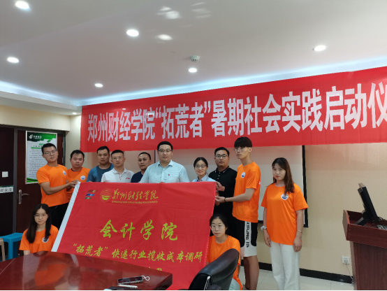 为使同学们充分了解快递揽收各个环节的成本控制过程,深入认识快递企业运营流程,会计学院“拓荒者”调研队将在邮政快递开展暑期社会实践活动。7月12日,“拓荒者”调研队在中原分局邮政事业部举行了暑期社会实践活动启动仪式,中原区邮政局负责人张文彬、业务经理高广新、客户经理王信、内务主管王毓盛、客户经理岳聪涛,“拓荒者”调研队指导老师郝斌丽及团队成员参加启动仪式,仪式由岳聪涛主持。