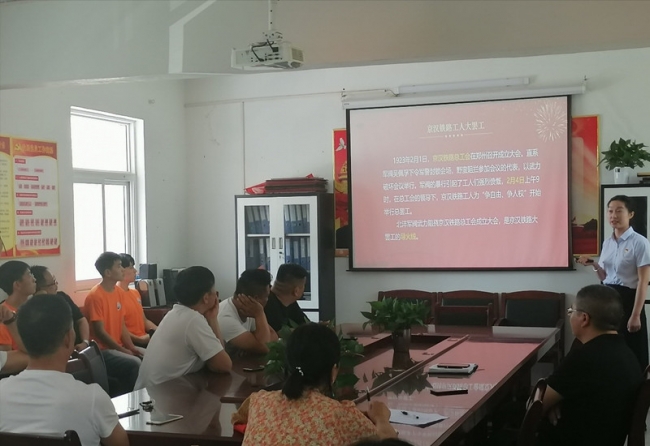 实践团带队老师为保合寨村村委会党员干部宣讲红色知识