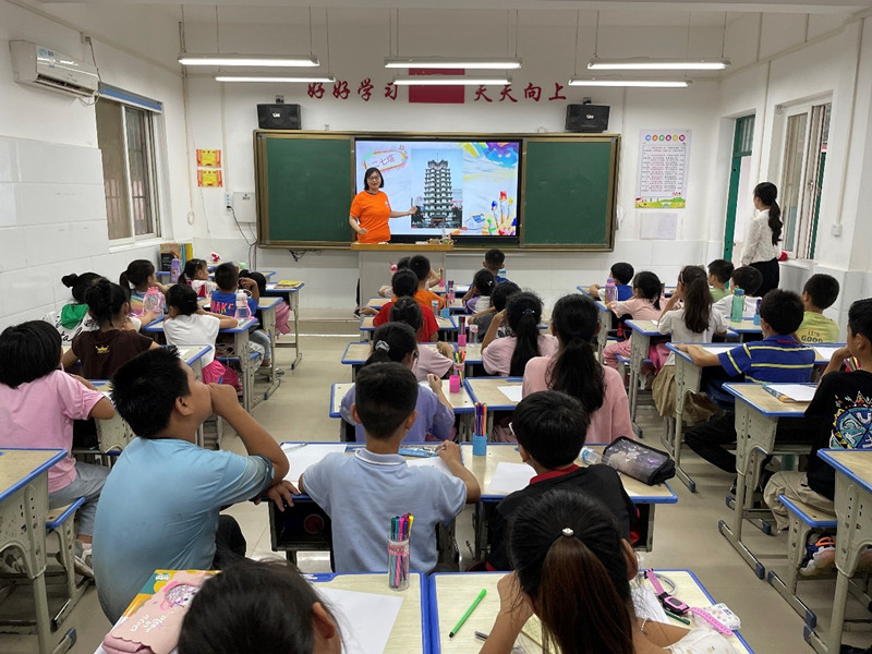 实践团成员为孩子们讲述二七纪念塔故事