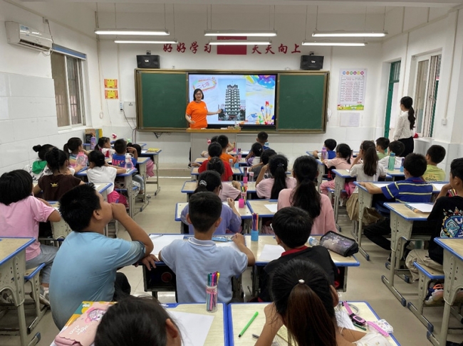实践团在保合寨小学教小朋友们画画