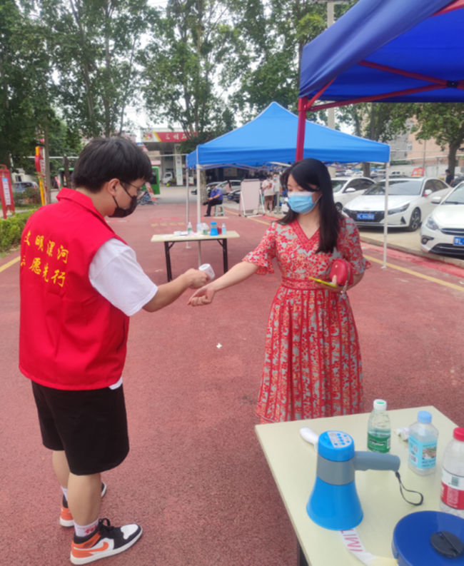 2020级软件工程专升本6班王浩旭目前是长葛市老城镇政府的志愿者队伍中的一份子。他主要工作是对往来人员进行登记,测量体温和进行酒精消毒。王浩旭说:通过多天的志愿者服务工作,我深深地体会到了社区工作人员的不易,也为能在疫情防控工作中贡献自己的力量感到光荣和自豪。我会继续尽职尽责地做好自己的工作,用责任担当向街道的每一户家庭送去安全感。青春无畏,志愿先行!