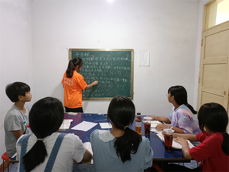 “蒲公英”社会实践团成员翟般若指导学生完成作业