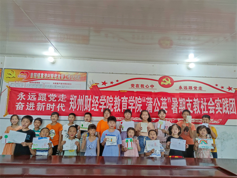教育学院“蒲公英”暑期支教社会实践团积极响应“永远跟党走,奋进新时代”号召,7月10日至30日,采取线上线下相结合的方式,紧紧围绕“乡村振兴”战略,将“三下乡”与“返家乡”相结合,深入信阳、新乡、驻马店、焦作、周口、洛阳等18个地市,56个村落开展了为期20天的义务支教活动,参与实践队员186人,涉及支教点学生达800余名,以实际行动庆祝建党100周年。