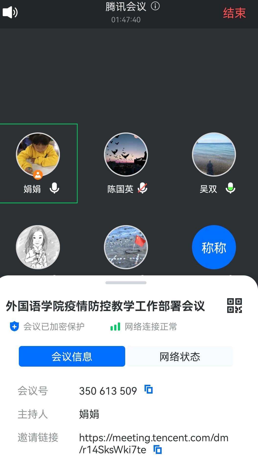 院长邢理平首先传达了学校当天上午疫情防控教学工作专班会议精神要求全体教职工在这个特殊时期把灾难当教材,与祖国共成长”,结合实际情况制定切实可行的教学方案和授课方式,做好在线教学应急预案,根据实际情况灵活变通,保证教学效果和教学质量。她还要求全体教师利用各种平台与学生建立即时有效的联系与沟通,实时掌握学生在学习过程中遇到的各种问题。