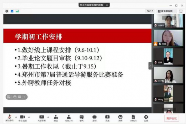 各教研室主任组织全体教学口教师参加云端会议,会上各教研室围绕通报学校疫情防控要求、传达学院期初教育教学工作、布置教研室近期工作及交流在线教学准备等内容展开,各教研室老师还热烈交流在线教学经验,探讨教研室学期工作。
