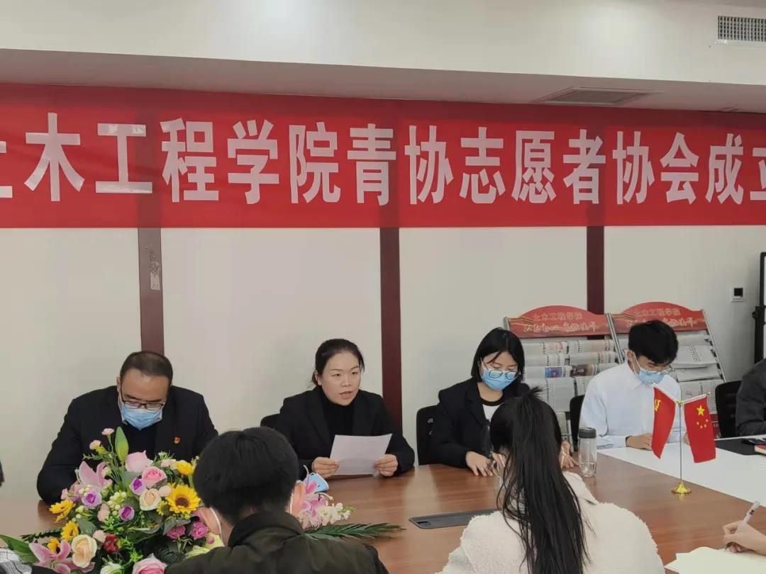 土木工程学院党总支副书记王丹丹宣读青年志愿者协会成立文件