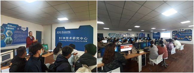 随后,魏治民总监向学院学生介绍了青矩工程顾问有限公司基本概况并结合河南省直青年人才公寓项目介绍了BIM技术应用,学生代表汇报了2021年“鲁班杯”全国高校BIM毕业设计大赛作品。最后,魏治民对土木工程学院学生BIM技术学习进行了指导。