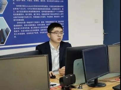 郭融鹏向土木工程学院学生介绍了上海宝冶集团郑州分公司BIM中心的基本概况,结合楷林项目介绍了BIM技术应用,并根据上海宝冶BIM中心的管线综合排布标准对学生进行了培训。