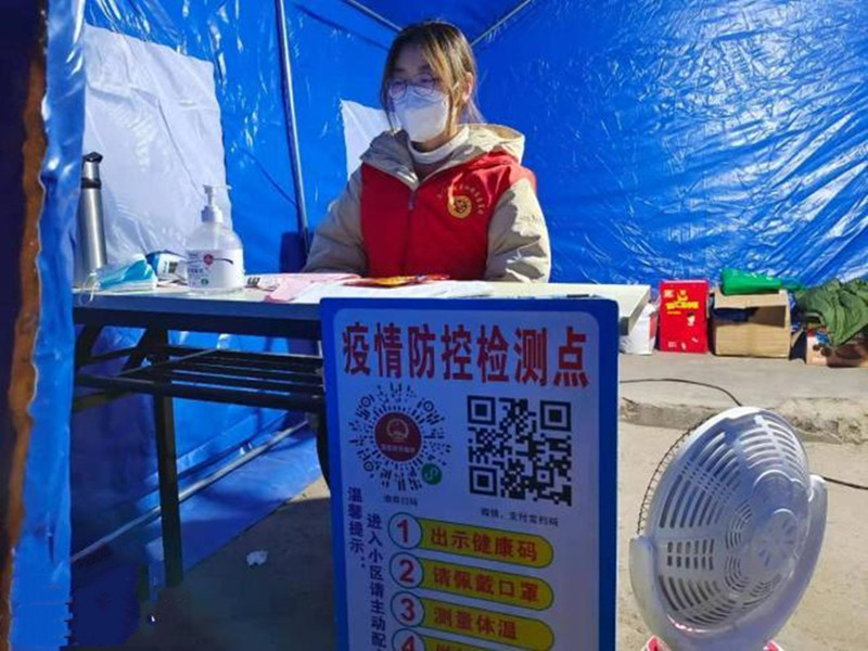 张鑫在疫情防控卡点值班