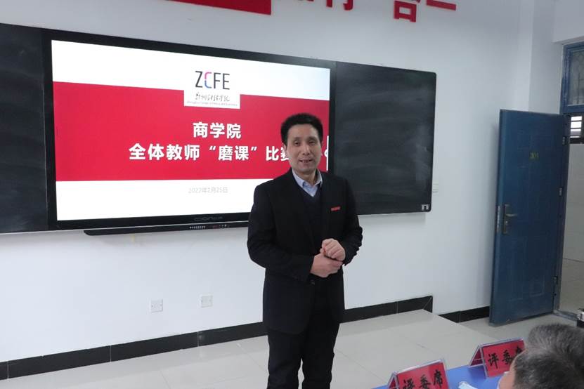 商学院院长冀延卿对各位领导专家的到来表示衷心感谢。他强调,开展多种形式的“磨课”活动是学院“一师一优课”建设的重要举措,也是促进教师提高教学能力的必要途径,对提高学院整体教学质量、评估实现全面达标具有重要意义。他表示,希望参赛教师能够发挥出自己的最高水平,在比赛活动之后坚持把自己主讲的课程一直“磨”下去、“练”下去,比赛虽结束、“磨课”不停止;希望全体教师以此次比赛为契机,学习参赛老师课堂教学的亮点,取长补短,总结学习,努力打造属于自己的“金课”。