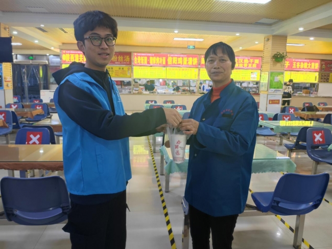 志愿者们为食堂保洁阿姨送爱心早餐
