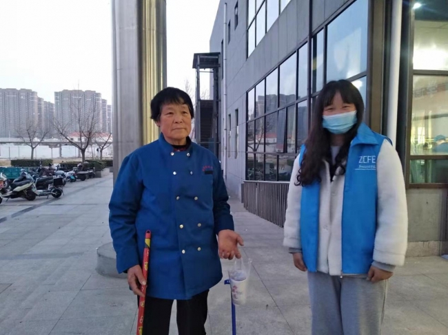 校园里随处可见环卫工人的身影,不论严寒酷暑,她们始终坚守自己的岗位,虽然早上的天气还是很冷,但当阿姨接过同学们手中的爱心早餐时,说“天气虽冷,但是感觉心里特别温暖,谢谢同学们这么关注我们。”看着环卫阿姨们吃得很开心,志愿者们的心里也是暖暖的。
