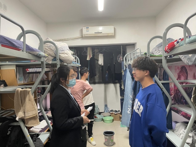 为了解疫情防控期间学生思想动态及学习生活情况,缓解其紧张情绪,强化学生宿舍管理,营造文明、安全、健康有序的科学防疫环境。自4月起,智能工程学院领导班子每天利用值班时间,带领值班老师深入学生宿舍开展走访活动。